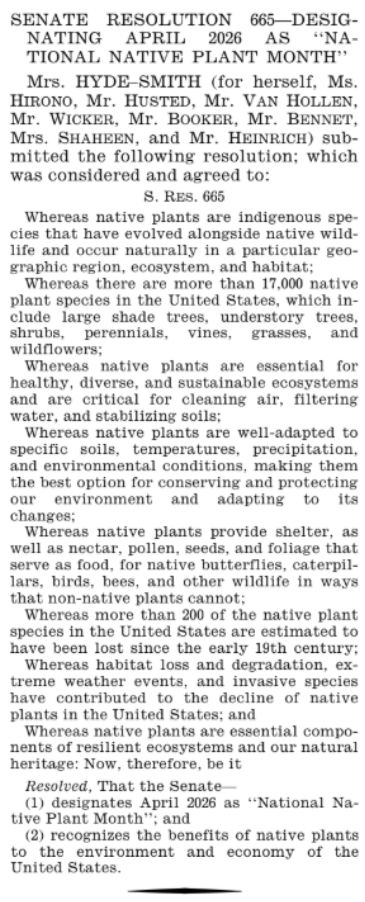 Whereas native plants are essential components of resilient ecosystems and our natural heritage: Now, therefore, be it