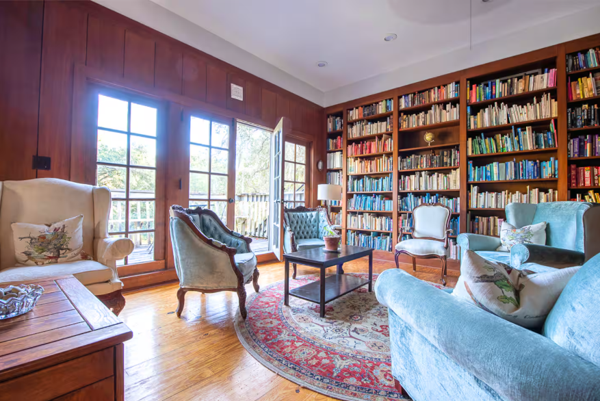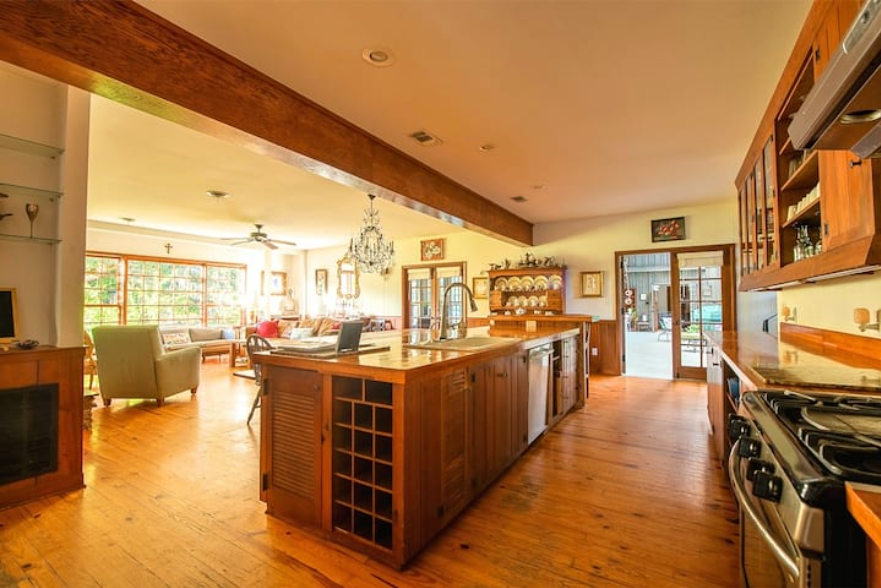 Fully stocked kitchen/butler’s pantry/dining/great room (ground floor); library (plus a cot, air mattress, 2 pack n plays, and multiple couches)
