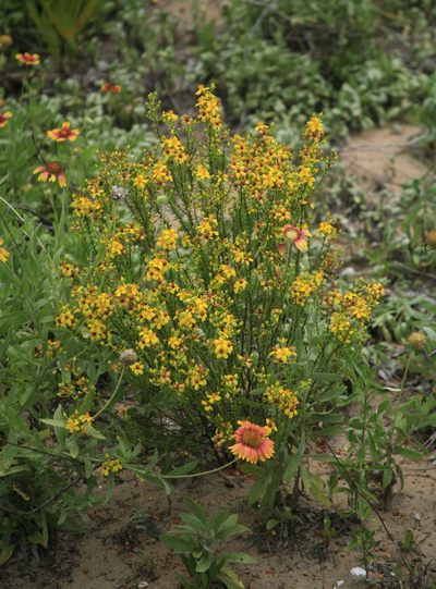 The endemic ground-dwelling bee, Hesperapis or balduina bee ( Hesperapis oraria ), is dependent on this species.