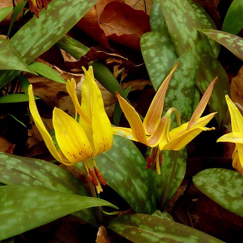 Supports early pollinators, especially bees ( https://gnps.org/plants/dimpled-trout-lily-erythronium-umbilicatum/ ).