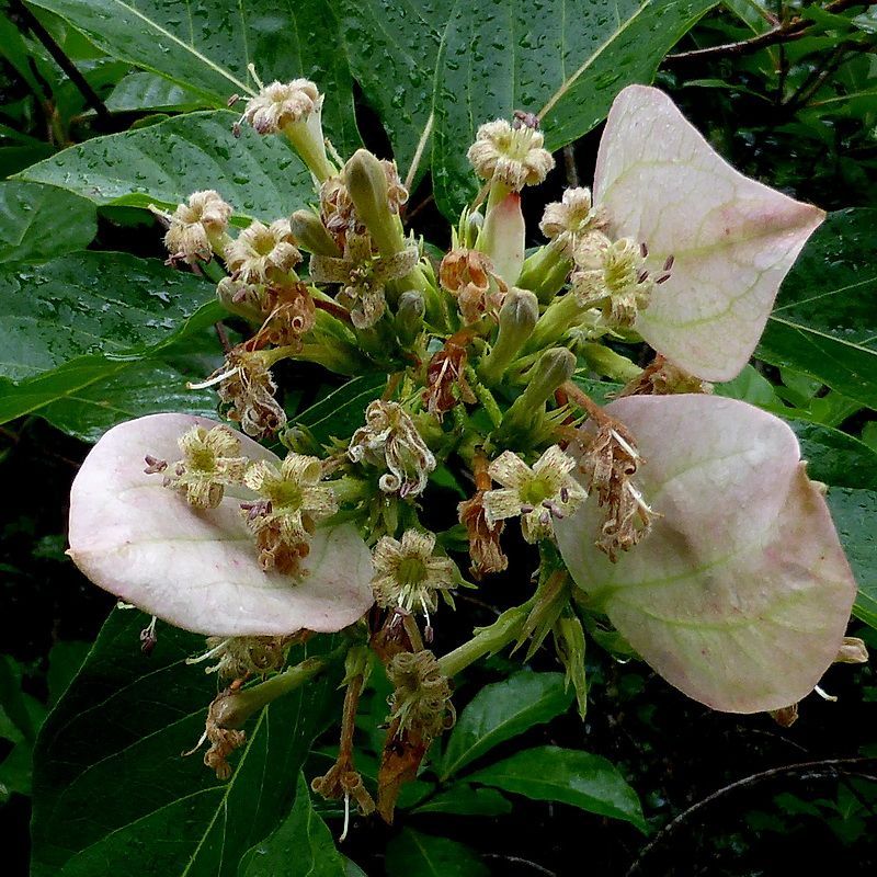 The showy part of the flower is the white, pink or rose bracts that become petal-like.